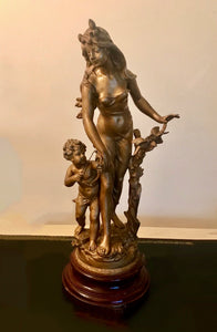 Emile Bruchon (act. ca. 1880-1910) - Large Sculpture "Protection" - 52 cm - Art Nouveau - Zamac - ca . 1900