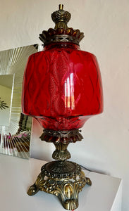 Original Mid-Century Large Carl Falkenstein Lamp, with Cranberry Glass