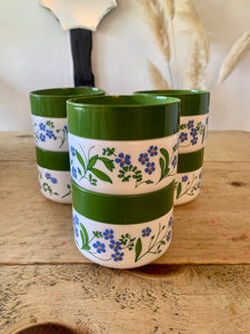 1950s Vintage Milk Glass Stackable Storage Pots with Forget-me-Not Flower Design, made by Cerve