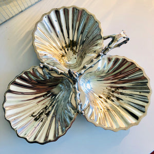 Vintage Silver Plate Triple Scallop Shell Bon Bon Serving Dish